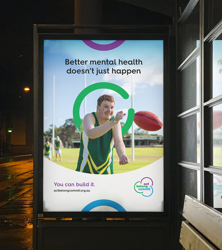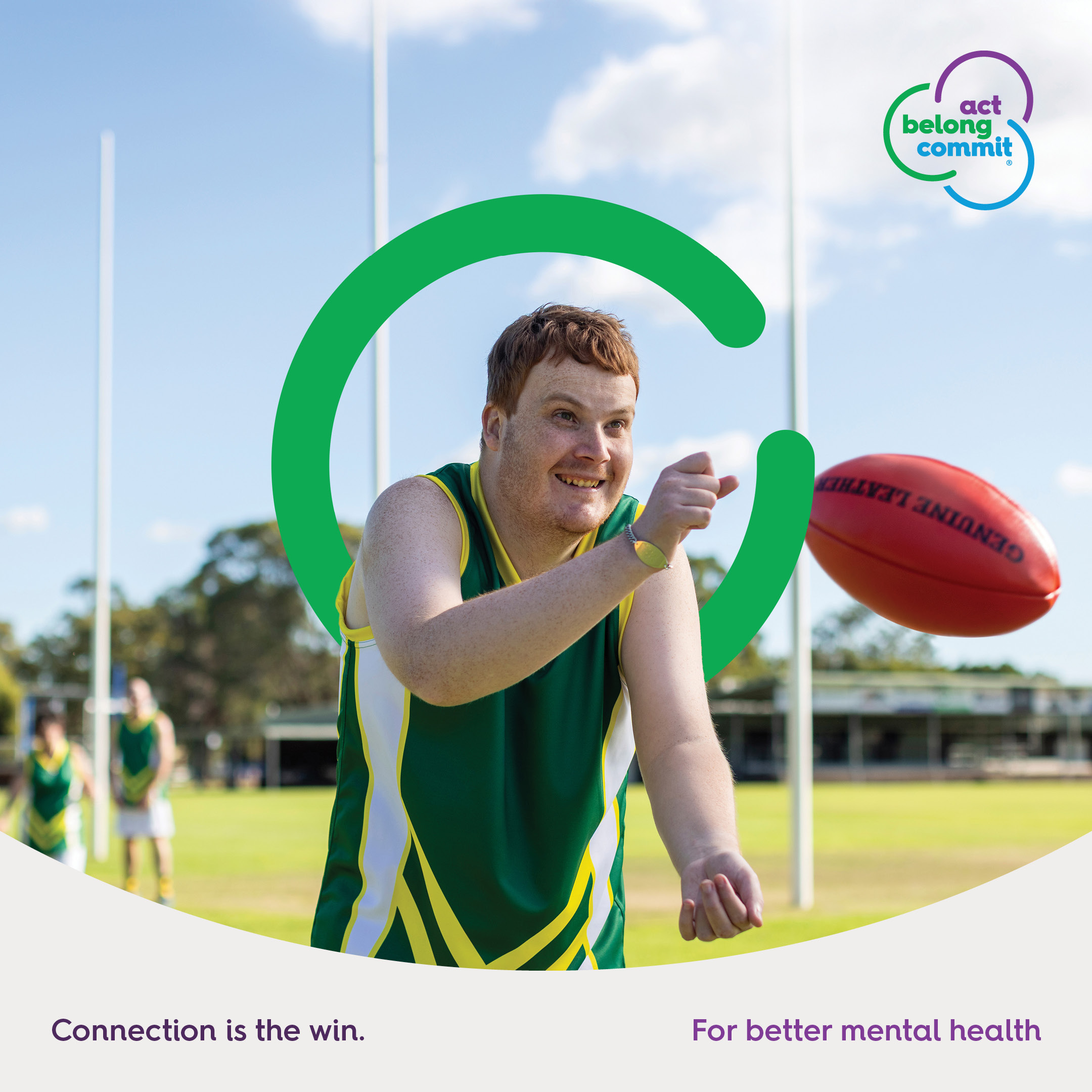 This campaign features wonderful people from our Partnership Program – footy players Ben, Troy and Tomsie from High Wycombe Football Club; gardeners Tam, Simon, Sandy and Ellen from Padbury Community Gardens; board game enthusiasts Kylie, Bonnie, Mason and Matty from Meeples, Decks and Dice; and the crew from Waterwheel Community Shed – Garry, Henry and Ian. We’re also grateful to our resident team from Mindful Movement and Deadly Minds – Charlene, Tash, Harrison, Jasmyne and Carol. Together, they’ve shown how the Act Belong Commit pillars make a real difference in people’s lives. Thank you all – you are amazing!