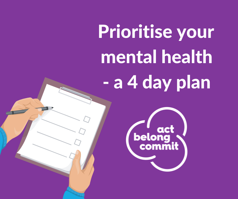 We don’t need to be a spectator when it comes to our mental health. The Act Belong Commit message provide a guide to the things we can do to help us stay mentally healthy. And right now, they are more important than ever.