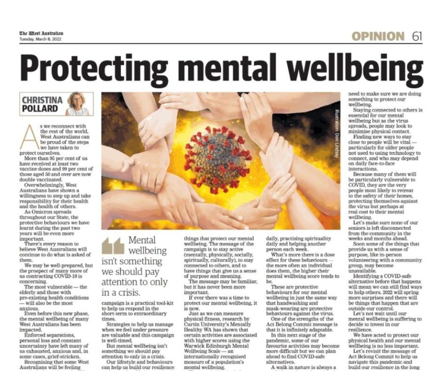 OPINION piece published in The West Australian, 8 Mar 2022.